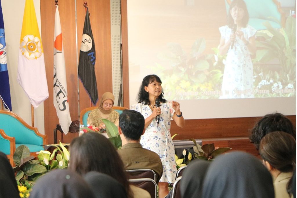 Acara ini dimoderatori oleh Dr.techn. Annisa Maulida Ningtyas, S.Kom., M.Eng., dosen dari Departemen Layanan dan Informasi Kesehatan SV UGM dan penyampaian materi utama oleh Adj. Assoc. Prof. Endang Handzel, MD, MPH, Ph.D., seorang epidemiolog dari U.S. Centers for Disease Control and Prevention (CDC) dan Adjunct Associate Professor di Rollins School of Public Health, Emory University, Amerika Serikat. Prof. Handzel menyampaikan presentasi mendalam tentang “Use of Information Technology to Support Disease Surveillance Programs” yang menjelaskan urgensi surveilans dan bagaimana teknologi informasi dapat memperkuat sistem surveilans penyakit yang ada. Teknologi informasi memegang peran krusial dalam meningkatkan sistem surveilans penyakit dengan memfasilitasi pengumpulan data, analisis, dan pelaporan secara real-time. Teknologi ini mengatasi keterbatasan metode tradisional berbasis kertas, seperti penundaan dan underreporting, melalui perangkat digital seperti dashboard, pemetaan GIS, dan analitik AI. Aplikasi seperti EWARS dan GPSSample memfasilitasi pengumpulan data dan respons yang cepat, sementara ANACoD membantu menganalisis mortalitas dan penyebab kematian. Dengan meningkatkan akurasi data dan mendukung pengambilan keputusan yang tepat waktu, integrasi TI meningkatkan kesiapsiagaan dan respons kesehatan masyarakat. Meskipun terdapat tantangan dalam infrastruktur, kualitas data, dan privasi, surveilans digital tetap esensial untuk mencapai keamanan kesehatan global dan membangun sistem kesehatan yang tangguh.